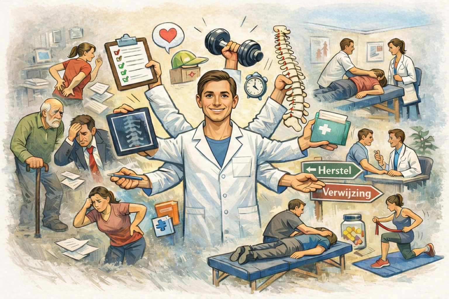 Of klachten nu ontstaan door werk, sport of het dagelijks leven – wij richten ons niet alleen op het verminderen van pijn, maar vooral op het verbeteren van uw belastbaarheid en het voorkomen van terugkerende klachten.